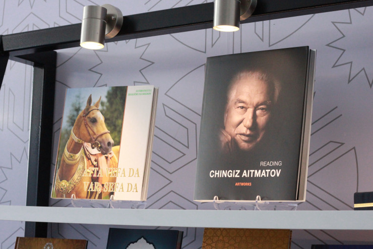 Павильон представил выставку книг, среди которых можно найти знаменитые произведения Абая Кунанбаева, Чингиза Айтматова.