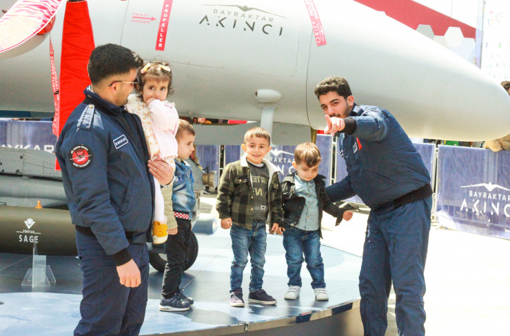 Кстати, фотографируются дети на фоне новенького Bayraktar Akıncı - турецкого высотного дальнего беспилотного летательного аппарата. Это одна из новейших разработок турецкой оборонной промышленности.