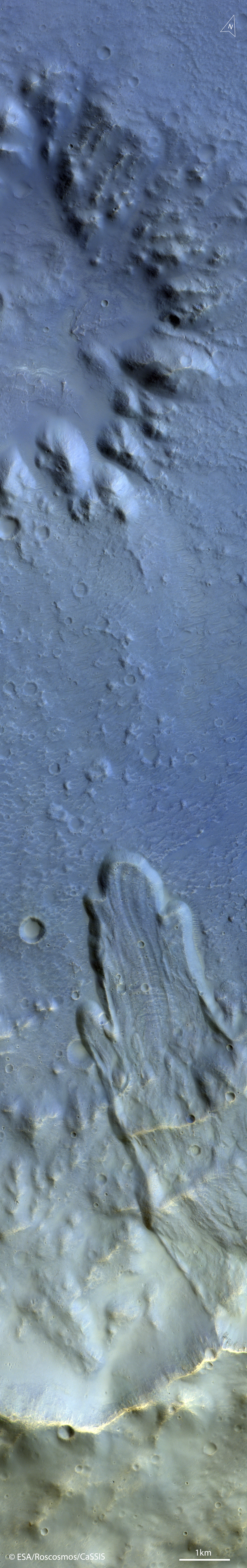 Космический аппарат запечатлел следы оползня на Марсе Фото:esa.int