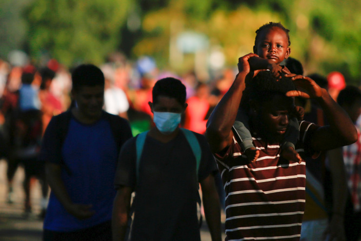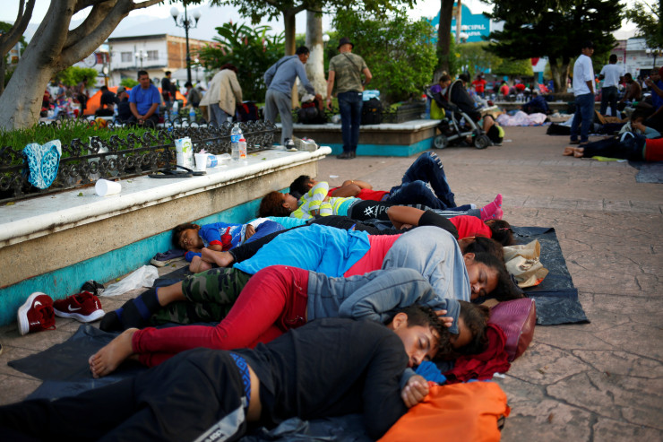 Караван является одной из двух больших групп мигрантов - выходцев из Центральной Америки и Карибского бассейна, которые покинули город Тапачула на юге Мексики, чтобы добраться пешком на север к границе США, с семьями, включая маленьких детей.