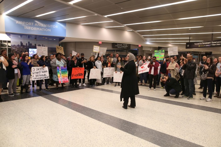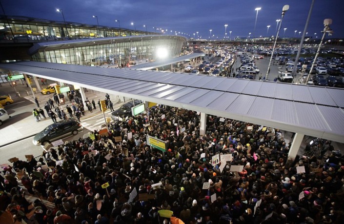 После того как 28 января американские власти начали исполнять распоряжение Трампа, в крупнейших аэропортах США начались акции протеста против указа. С утра субботы в аэропортах Нью-Йорка, Сан-Франциско, Чикаго, Сиэтла и других крупнейших городов проходят митинги в поддержку мигрантов. Люди приезжают к аэропортам, требуя признать действия президента антиконституционными. По всей стране в акциях протеста участвуют тысячи человек, сообщает Meduza.