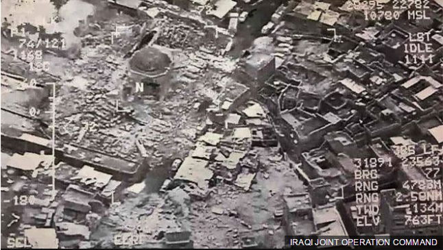 По словам командующего операцией по освобождению провинции Найнава, "мечеть ан-Нури и ее минарет аль-Хадба боевики взорвали, когда иракские военные продвинулись вглубь квартала Старого города, достигнув убедительных побед над бандами ДАИШ". Иракская армия выложила в своем аккаунте в Facebook фотографию разрушенной мечети.
