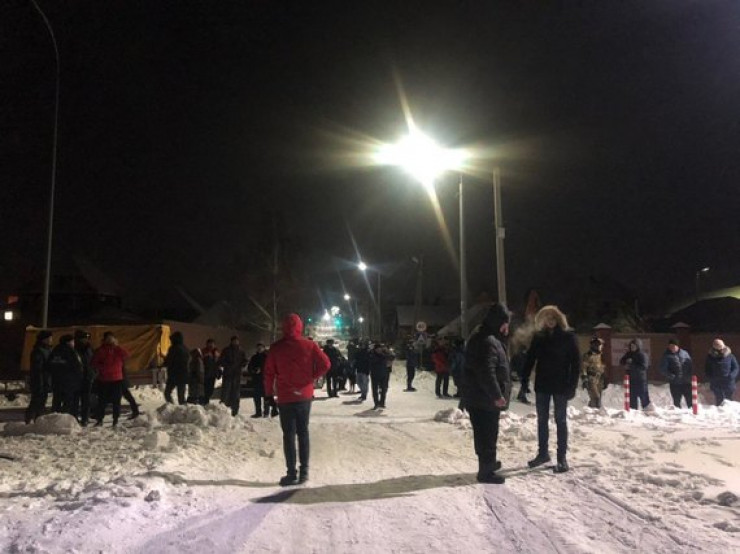 Люди собрались на месте крушения вертолета. © БИЗНЕС Online