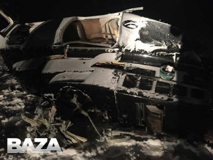 Как видно на снимках с места трагедии, вертолет получил серьезные повреждения.