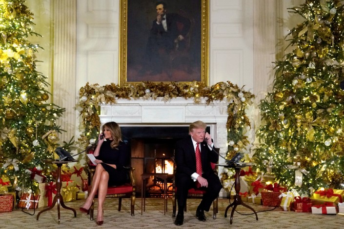 Накануне президент США Дональд Трамп и первая леди Мелания Трамп участвовали в специальной программе по отслеживанию "перемещений Санты". NORAD Tracks Santa - рождественская программа, созданная под покровительством Командования воздушно-космической обороны Северной Америки. Ежегодно, начиная с 1955 года, накануне Рождества NORAD Tracks Santa сообщает вымышленный путь сказочного Санта-Клауса, покинувшего Северный полюс и отправившегося разносить подарки детям по всему миру. В объявлении указывался номер телефона, по которому дети могли позвонить Санта-Клаусу и узнать, над каким городом он пролетает. На самом же деле дети, звонившие Санте, попадали в центр Континентального Командования воздушно-космической обороны. В это Рождество на звонки детей отвечали сам Трамп и первая леди США.