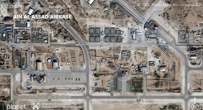 Авиабаза Эйн-аль-Асад после ударов иранских ракет. Фото со спутника