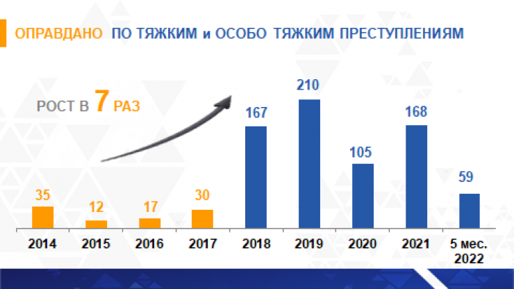Если сравнить с прежними годами, то оправданных только по тяжким и особо тяжким деяниям стало больше в 7 раз.