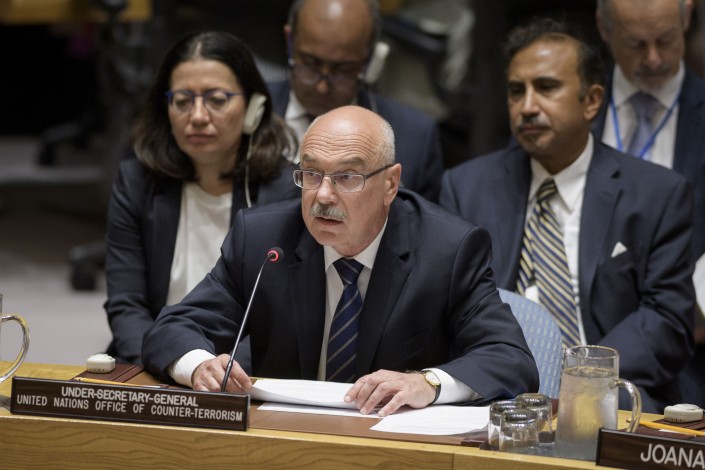 Воронков представил членам Совбеза ООН седьмой доклад главы ООН Антониу Гутерриша об угрозе со стороны ИГИЛ (ДАИШ, запрещена в Казахстане) международному миру и безопасности, а также усилиях ООН в поддержку государств-членов в противодействии этой угрозе.