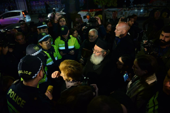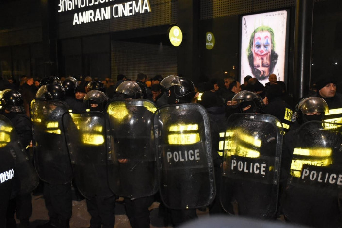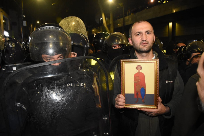 По данным МВД Грузии, полиция задержала 25 человек в Тбилиси и трех человек в Батуми, которые протестовали против скандальной картины.