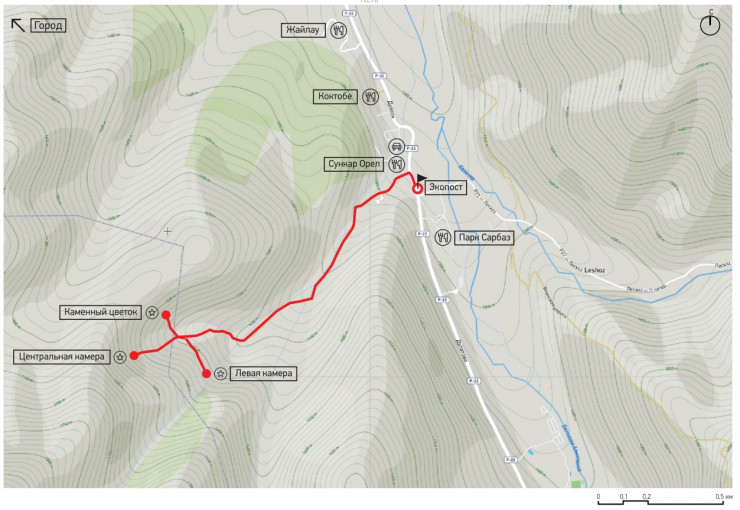 На автобусе нужно доехать до экопоста БАУ. С правой стороны по ходу в южном направлении - огороженная территория, в глубине которой высокие клетки-вольеры. Это - соколятник. Вдоль ограждения - тропа, устремляющаяся вверх по крутому склону. Через 200 метров она разветвляется: одна продолжает подниматься вверх по гребню, на юг, другая поворачивает по склону на запад. Можно выбирать любое направление, пути, в конце концов, смыкаются.