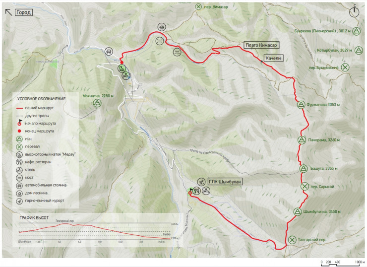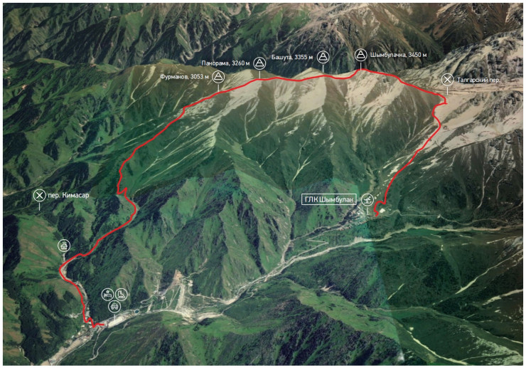 Описание: горнолыжный комплекс (ГЛК) "Шымбулак" - вершина Фурманова - Кимасар - Медеу